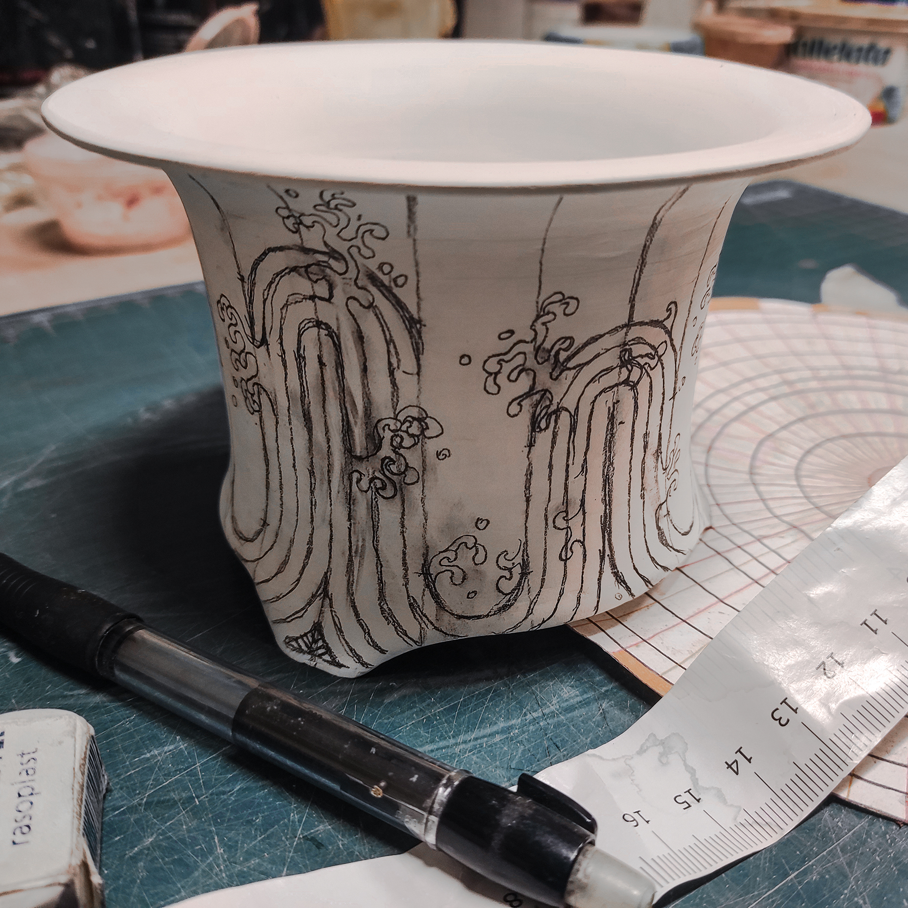 Each of my pots begins with an idea, a sketch on paper, then evolves into drawings and finishes that guide the search for proportion, form, and balance, and only finally reaches the clay. No molds or stamps, no cast or shortcuts: just slabs of clay cut, joined, shaped, and smoothed by hand with basic tools and, when necessary, a potter's wheel for some round or oval vases. While some pieces take a few days, others weeks, a few even months, because each clay has its own memory and character and is often unforgiving. And in the end, there's always the kiln, the final aim, always full of surprises; some enhance the work, others teach you how to start over. It's a slow process, requiring as much dedication as the plant to which it will belong.