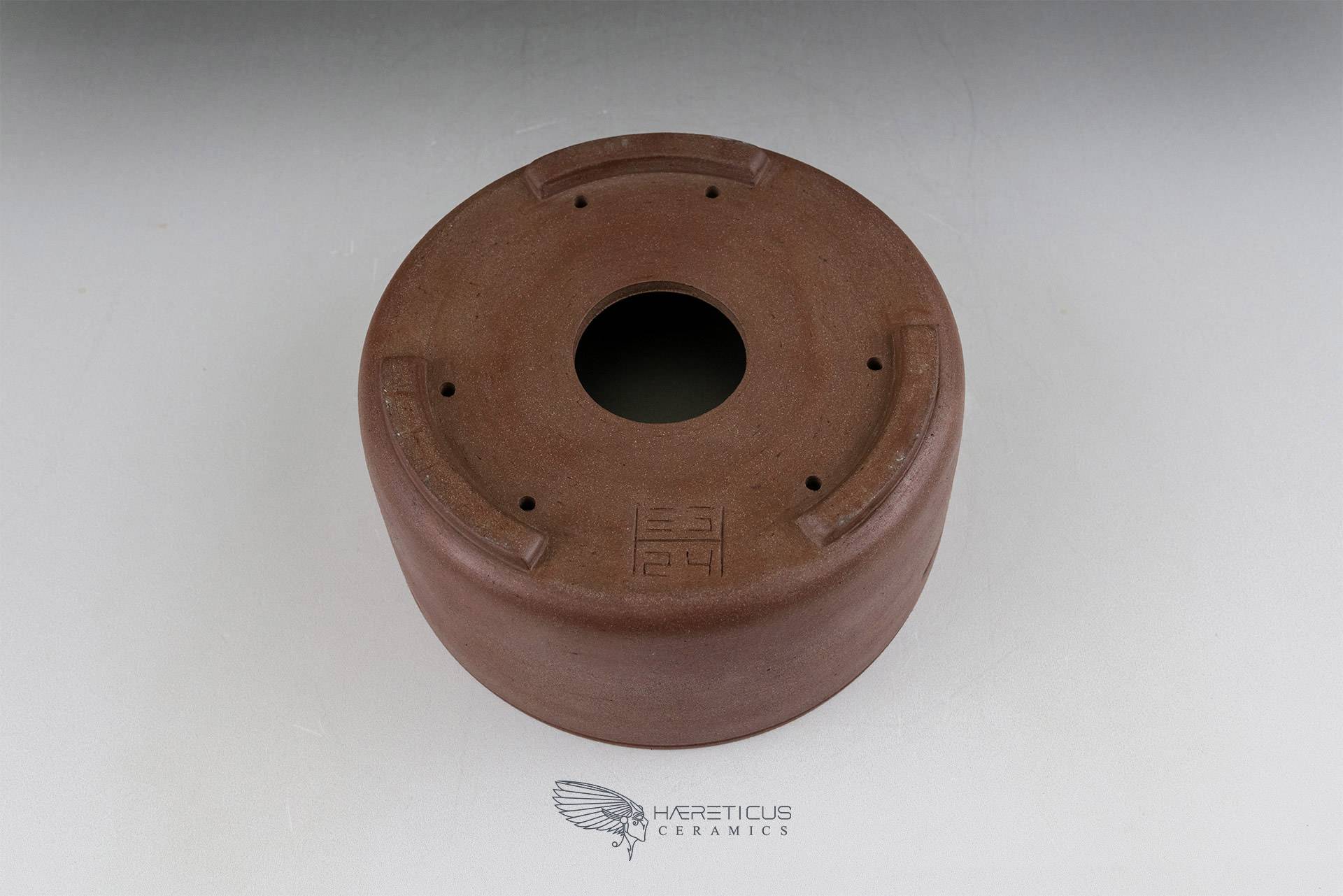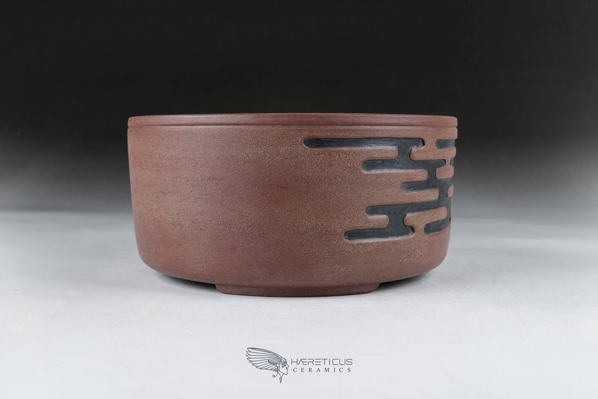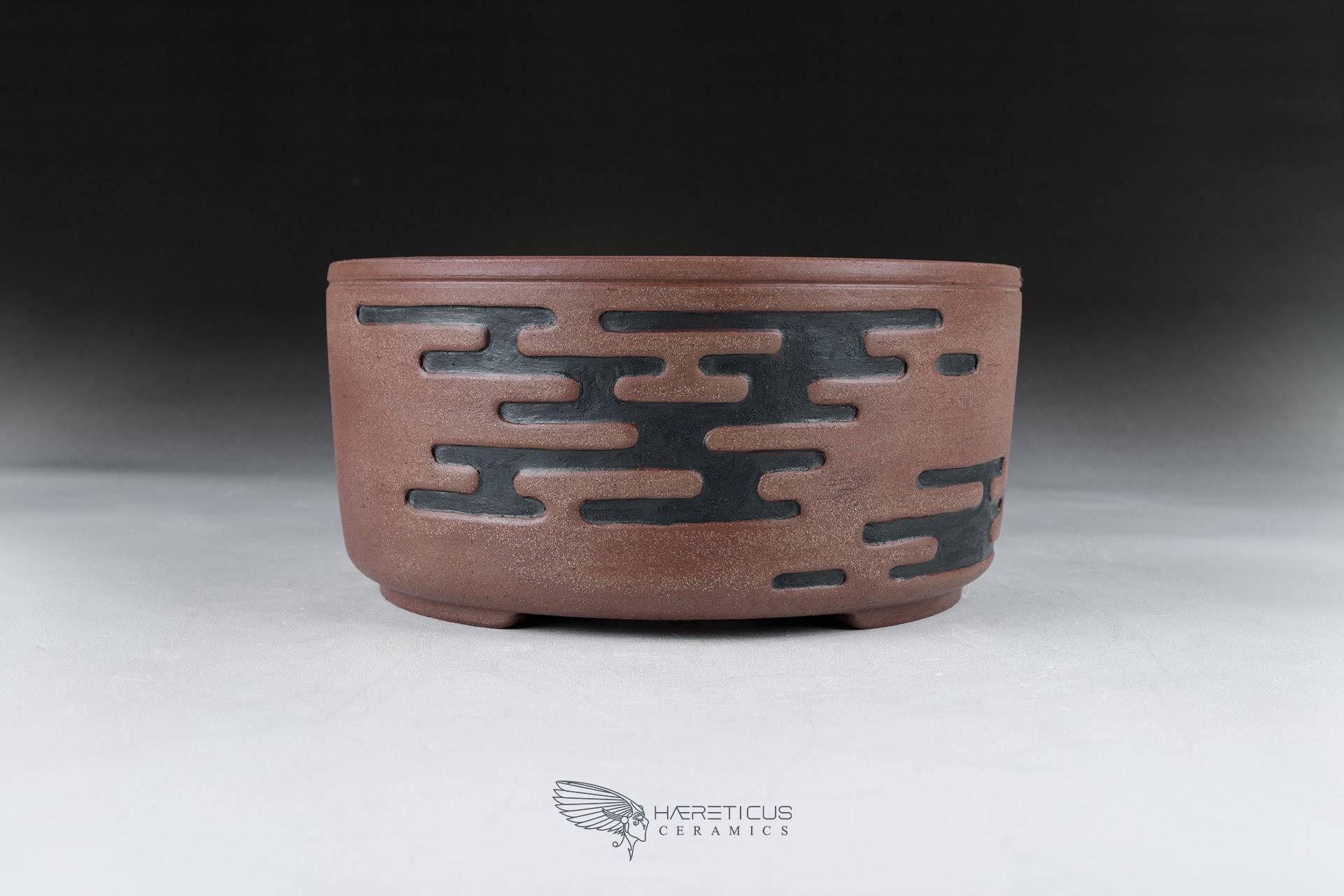 This pot, crafted on a potter's wheel, was then entirely hand-carved and oxidized in the hollows to give greater depth to the night sky and volume to the clouds. Having been fired at a higher-than-average temperature (1270°C - 2318°F), when viewed directly from above, it is not perfectly circular.