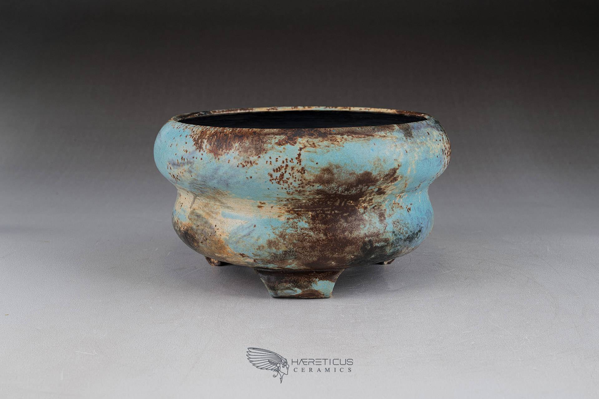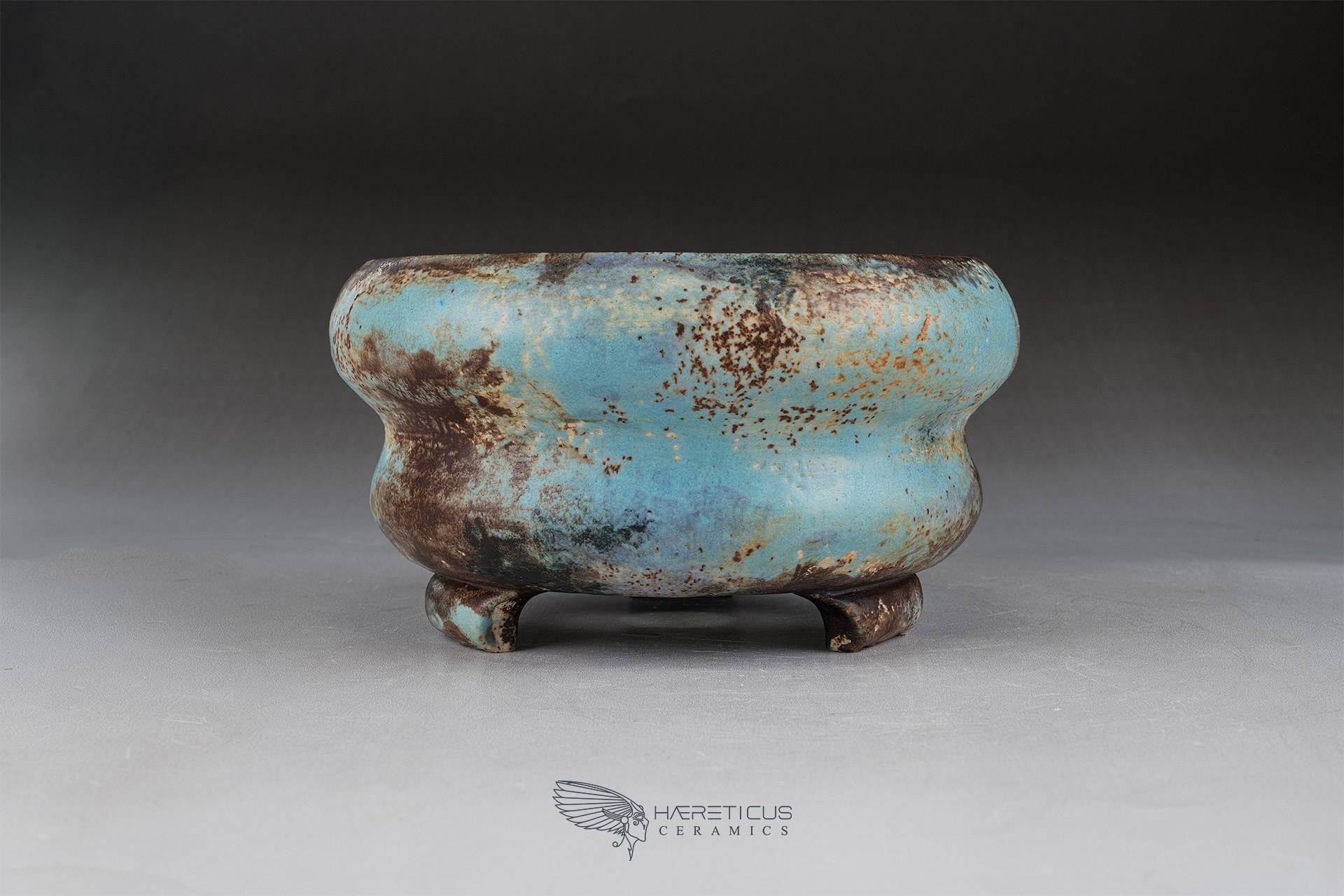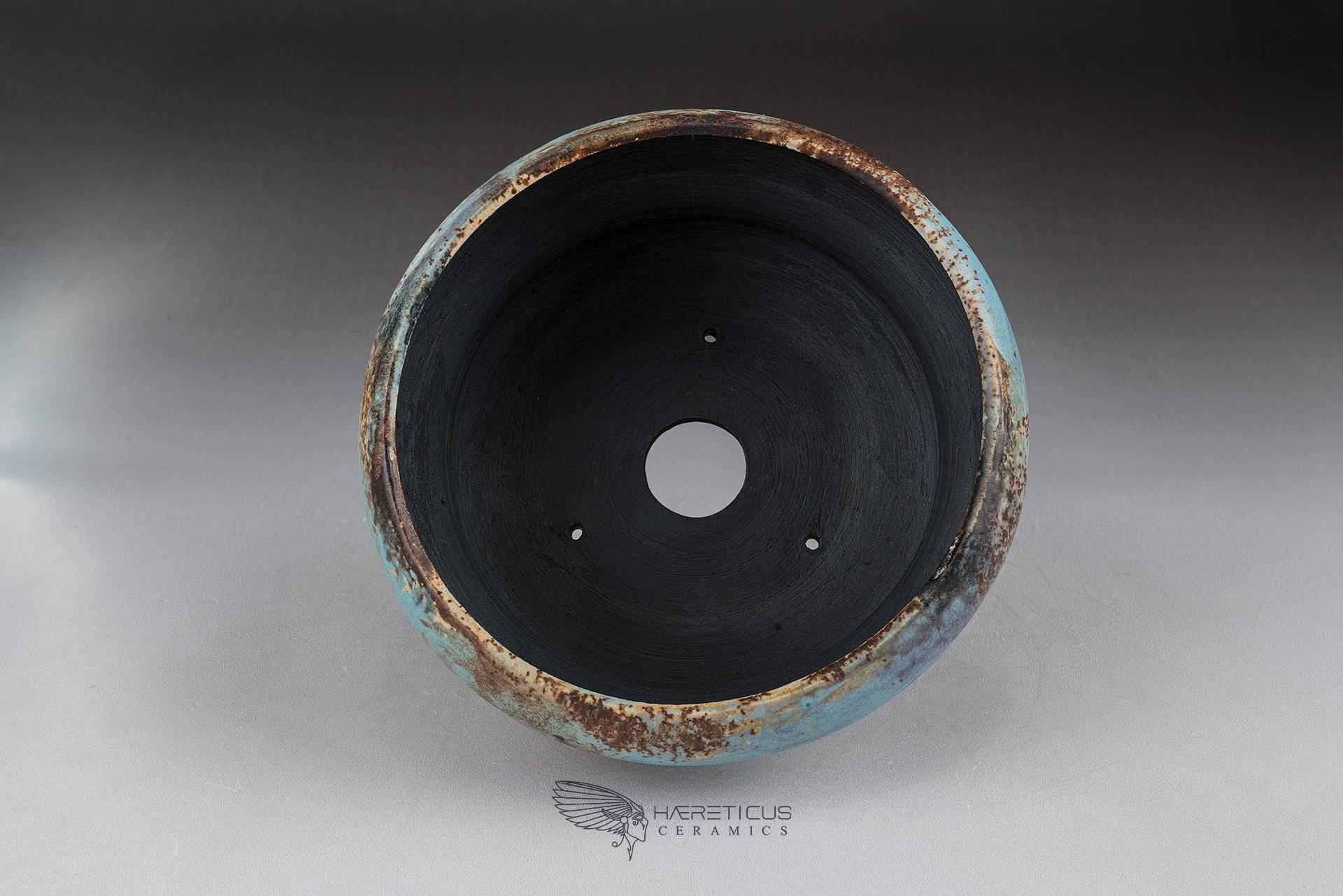 This pot was made using Hyotan gourds as a reference, traditionally used by Japanese farmers to hold sake or rice. In this case, however, since it was intended to hold a plant, I used its shape backwards, stylizing it. The vase is unglazed: the color is achieved with various oxides and low-temperature colored clays that vitrify at temperatures around 1240°C (2260°F).