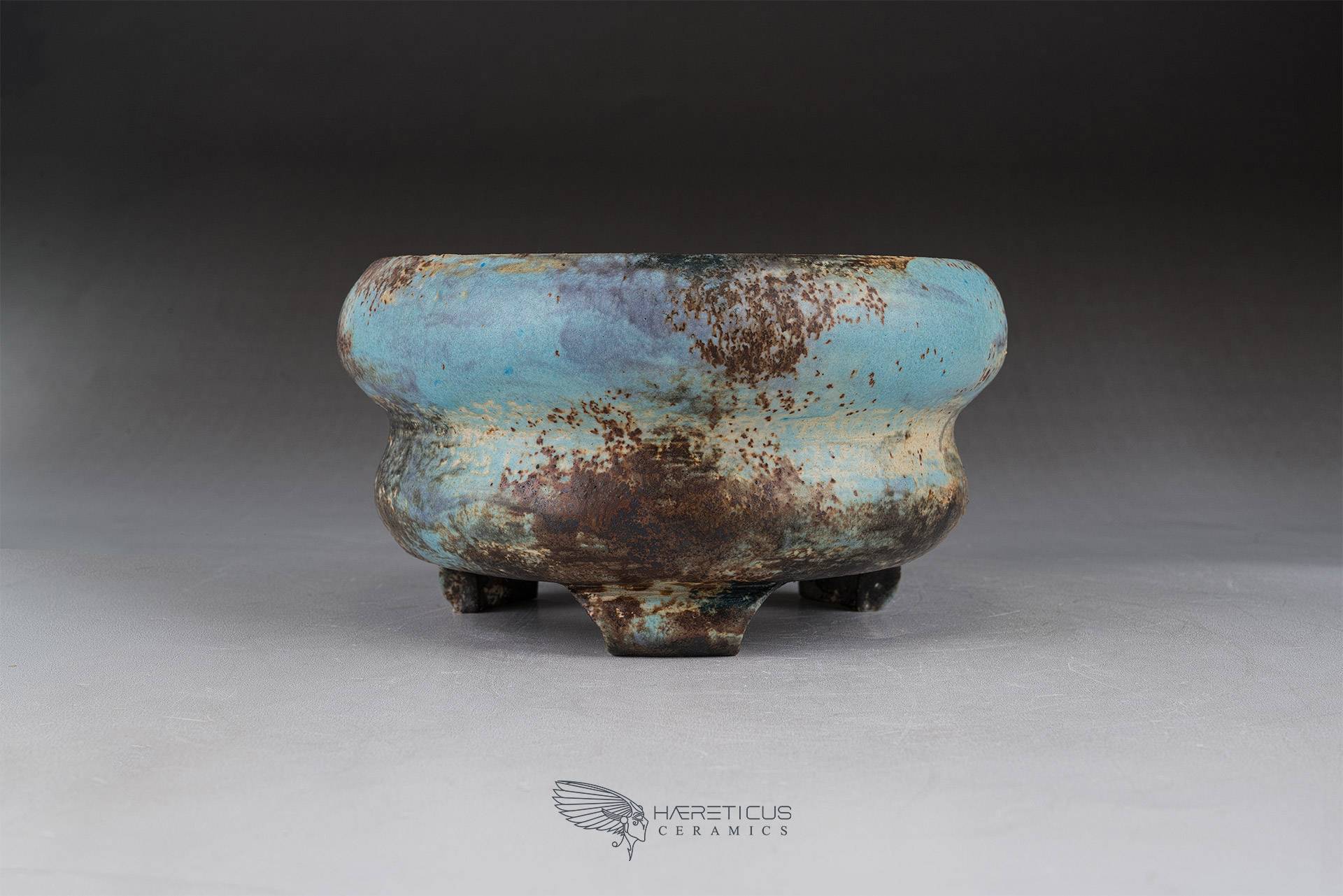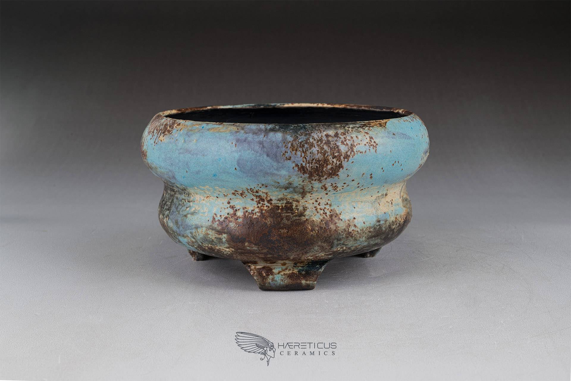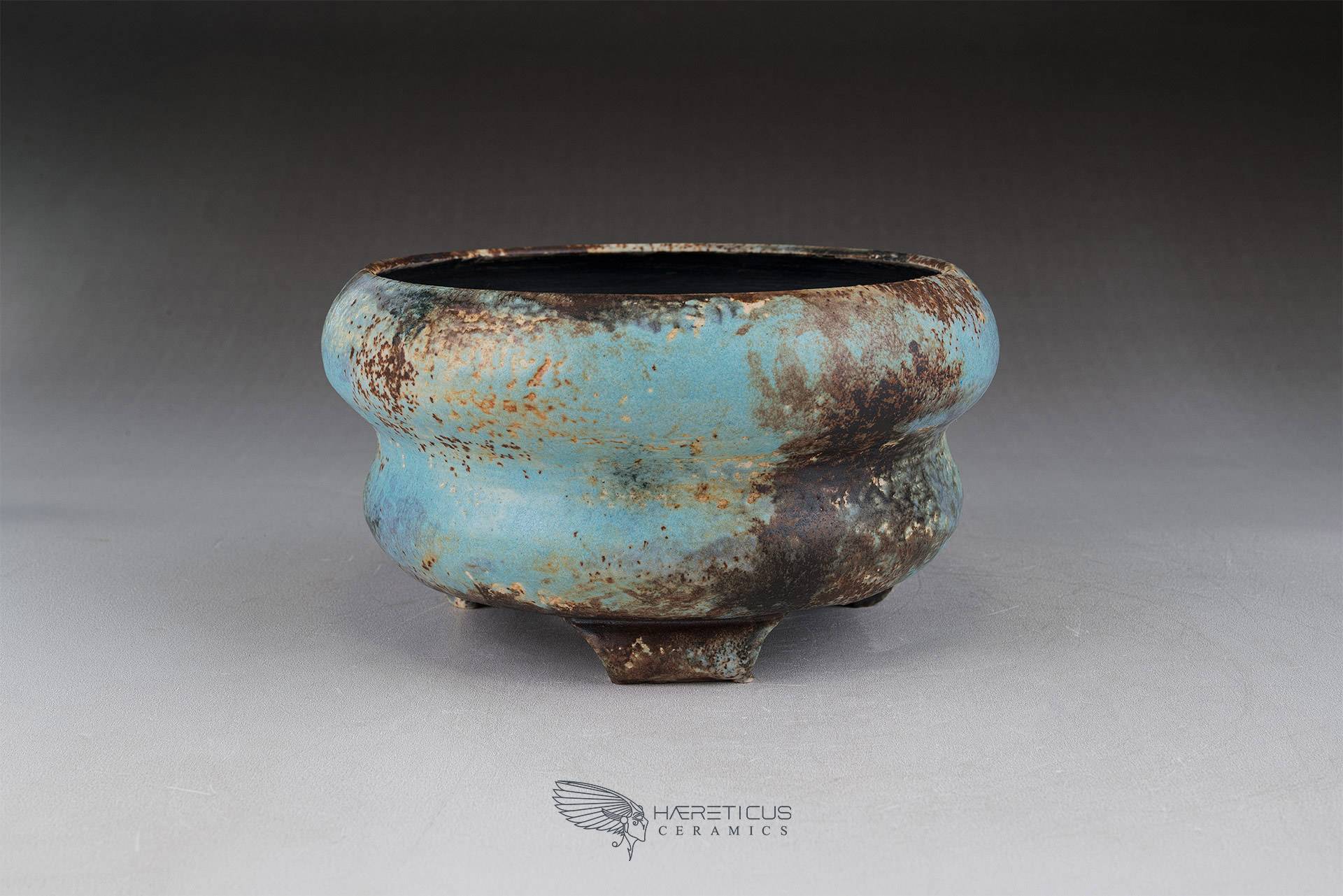 This pot was made using Hyotan gourds as a reference, traditionally used by Japanese farmers to hold sake or rice. In this case, however, since it was intended to hold a plant, I used its shape backwards, stylizing it. The vase is unglazed: the color is achieved with various oxides and low-temperature colored clays that vitrify at temperatures around 1240°C (2260°F).