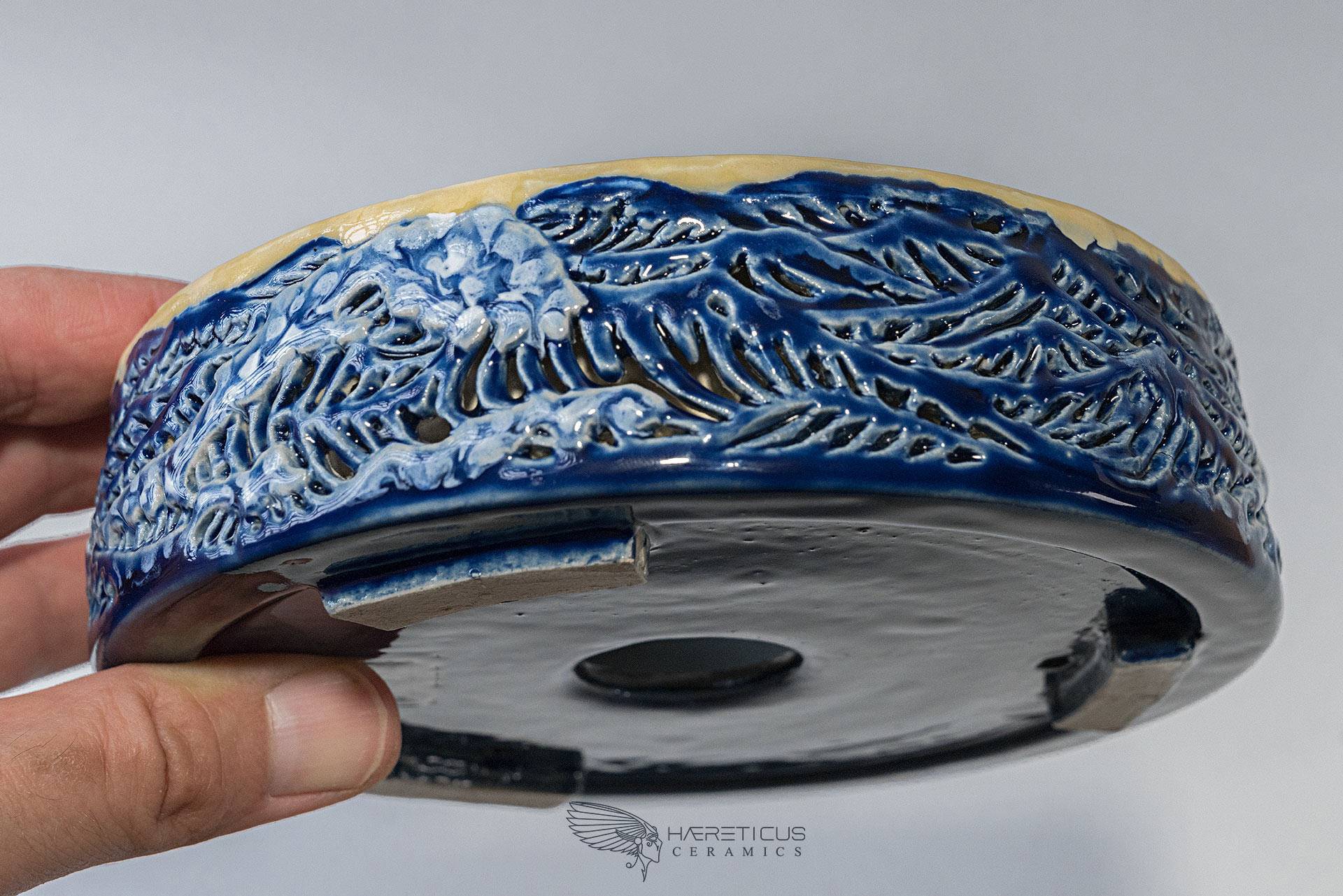 I began making this vase in 2019 as a true personal challenge and a tribute to Hokusai's art. The vase is double-walled, with the outer wall carved and hollowed out. The idea was to give a sense of depth to the waves by letting the perforated parts represent the deepest, darkest parts of the sea. The result wasn't exactly what I expected, but it enriched me with new knowledge and a healthy dose of perseverance.