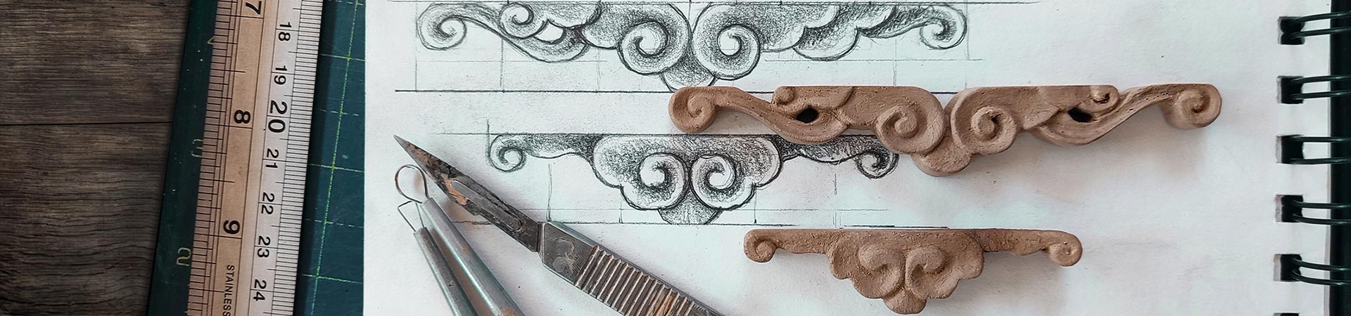 Each of my pots begins with an idea, a sketch on paper, then evolves into drawings and finishes that guide the search for proportion, form, and balance, and only finally reaches the clay. No molds or stamps, no cast or shortcuts: just slabs of clay cut, joined, shaped, and smoothed by hand with basic tools and, when necessary, a potter's wheel for some round or oval vases. While some pieces take a few days, others weeks, a few even months, because each clay has its own memory and character and is often unforgiving. And in the end, there's always the kiln, the final aim, always full of surprises; some enhance the work, others teach you how to start over. It's a slow process, requiring as much dedication as the plant to which it will belong.