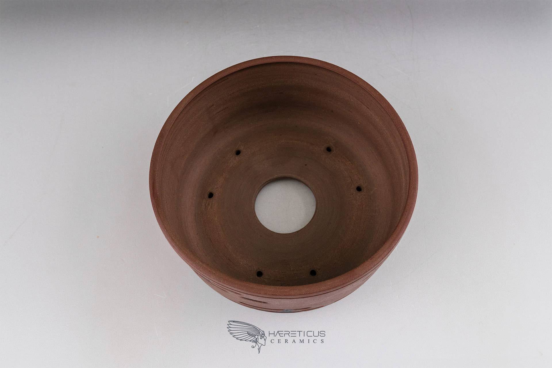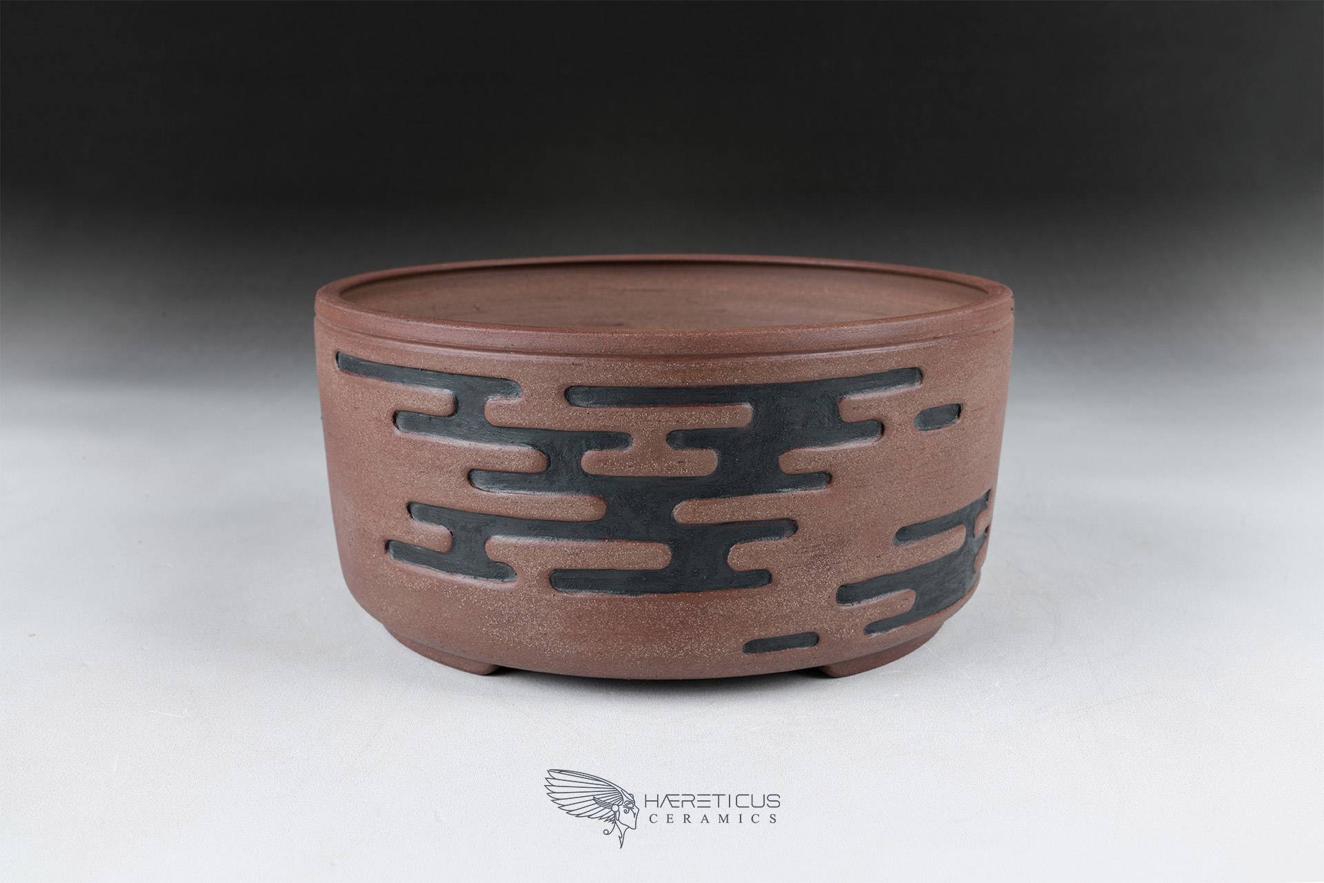 This pot, crafted on a potter's wheel, was then entirely hand-carved and oxidized in the hollows to give greater depth to the night sky and volume to the clouds. Having been fired at a higher-than-average temperature (1270°C - 2318°F), when viewed directly from above, it is not perfectly circular.
