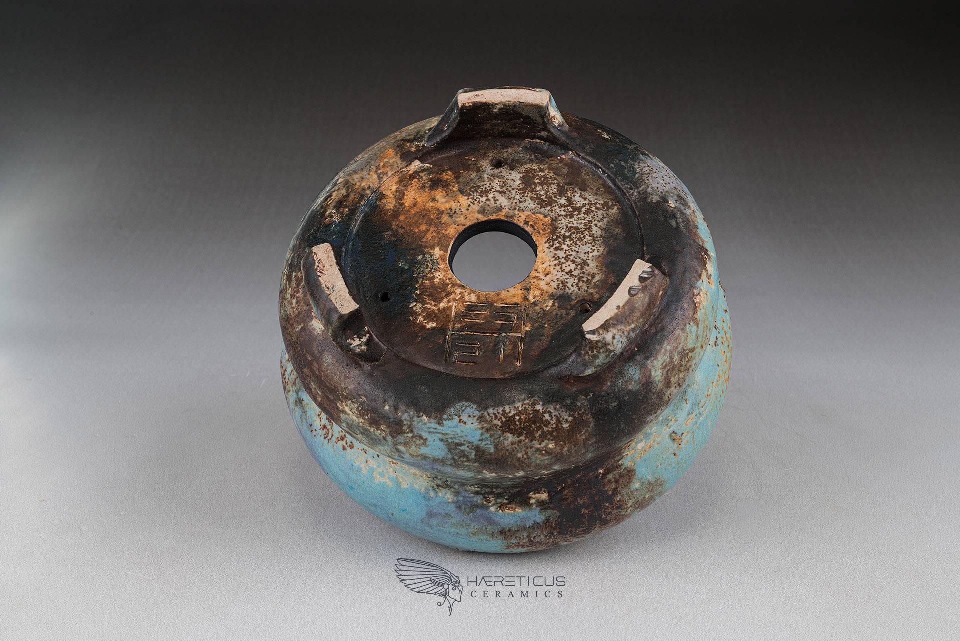 This pot was made using Hyotan gourds as a reference, traditionally used by Japanese farmers to hold sake or rice. In this case, however, since it was intended to hold a plant, I used its shape backwards, stylizing it. The vase is unglazed: the color is achieved with various oxides and low-temperature colored clays that vitrify at temperatures around 1240°C (2260°F).