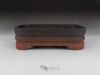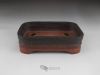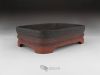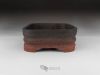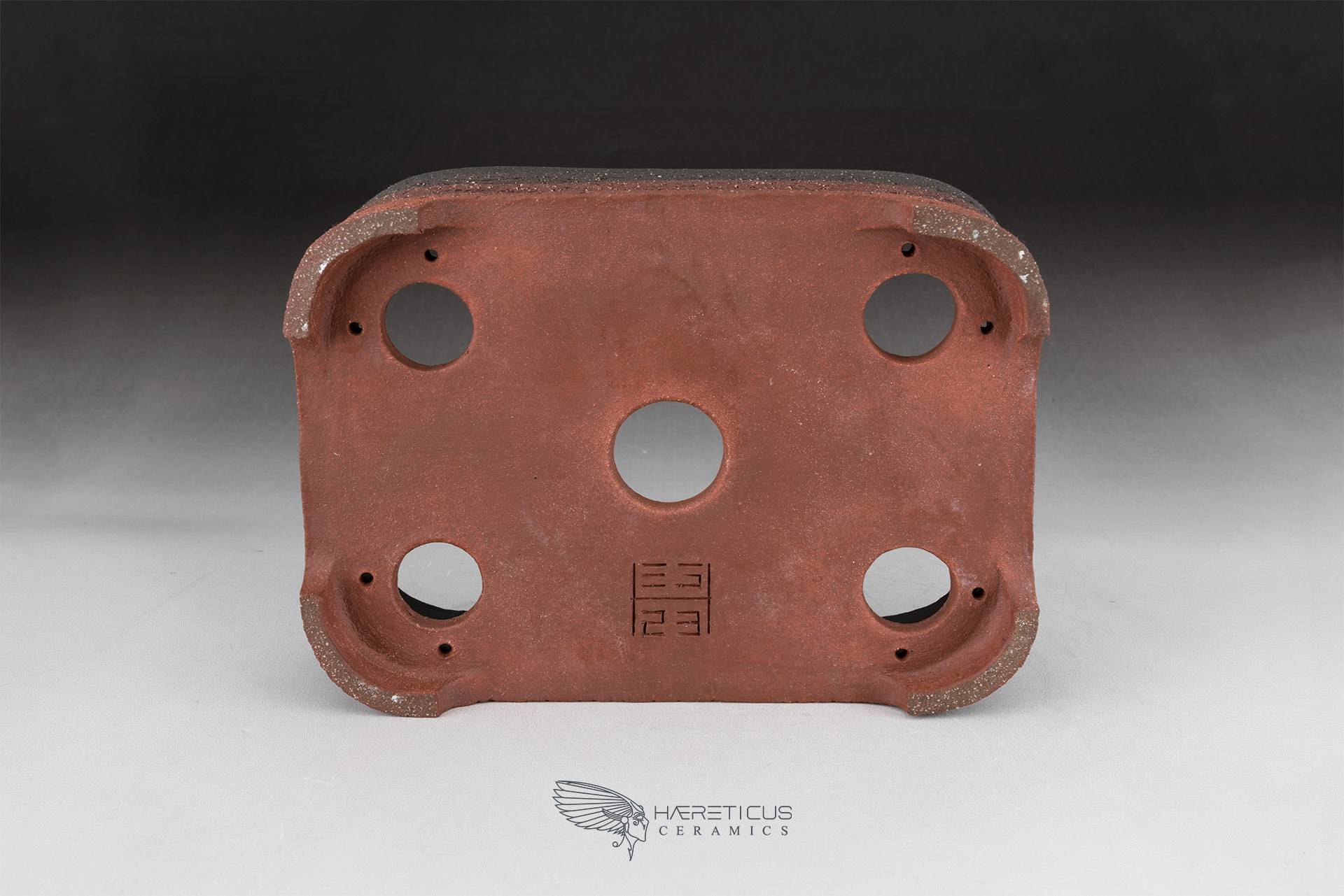 Rectangular pot, constructed from slabs (tatara-kurinuki), made of a neriage clay rich in chamotte, which gives the structure greater solidity and a rustic look. Two different clays, one black and one red, were blended in varying degrees and then pressed together to achieve a natural gradient, intrinsic of the pot's material.