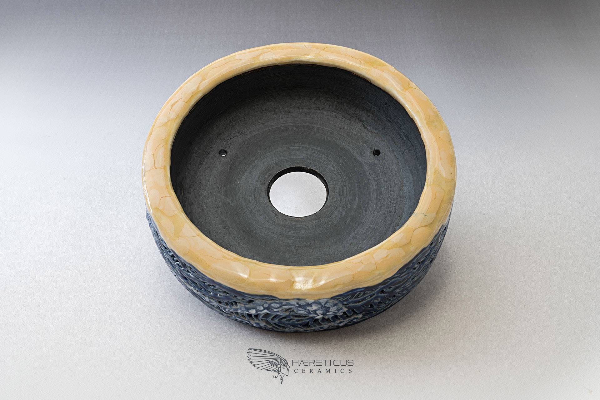 I began making this vase in 2019 as a true personal challenge and a tribute to Hokusai's art. The vase is double-walled, with the outer wall carved and hollowed out. The idea was to give a sense of depth to the waves by letting the perforated parts represent the deepest, darkest parts of the sea. The result wasn't exactly what I expected, but it enriched me with new knowledge and a healthy dose of perseverance.